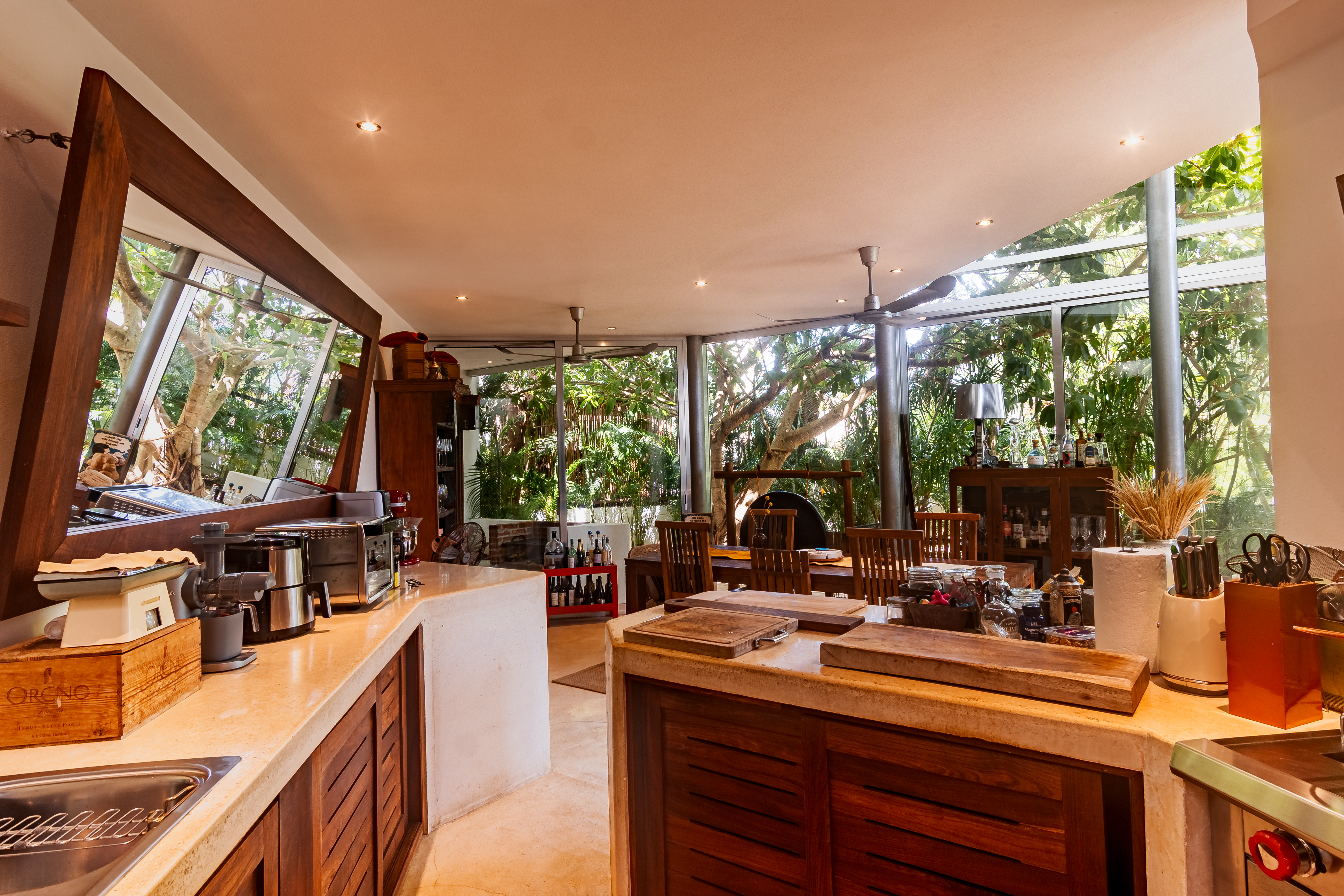 Estilo y Acabados: Estilo boho/chic caribeño con pisos de chukum, cemento pulido y carpintería en madera de zalam